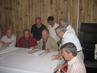 O refeitório de outros tempos, com a cara lavada, acolhe os Ex-alunos e seus familiares... Diz-se, fala-se, conta-se... Tantas imagens ocorrem, tantas ansiedades se relembram, tantas profecias se projectam...Neste dia, antes do Almoço, foi lançado um pequeno livro - Vozes emersas de tempos e de espaços em Vinhais -, sob o mecenato da Câmara Municipal de Vinhais, representada pelo Dr. Roberto, em delegação do Sr. Presidente, Dr. Américo Pereira. O Autor agradeceu à CMV, distribuiu um exemplar pelos presentes, depois de ter considerado que o breve ensaio, ocasionado pelo facto de pertencer ao Curso anfitrião deste ano (Caloiros de 1958/59), pode servir de incentivo a outros trabalhos de Ex-Alunos. Este é apenas um primeiro registo de vivências pessoais e colectivas, modesto na sua forma e na sua matéria.